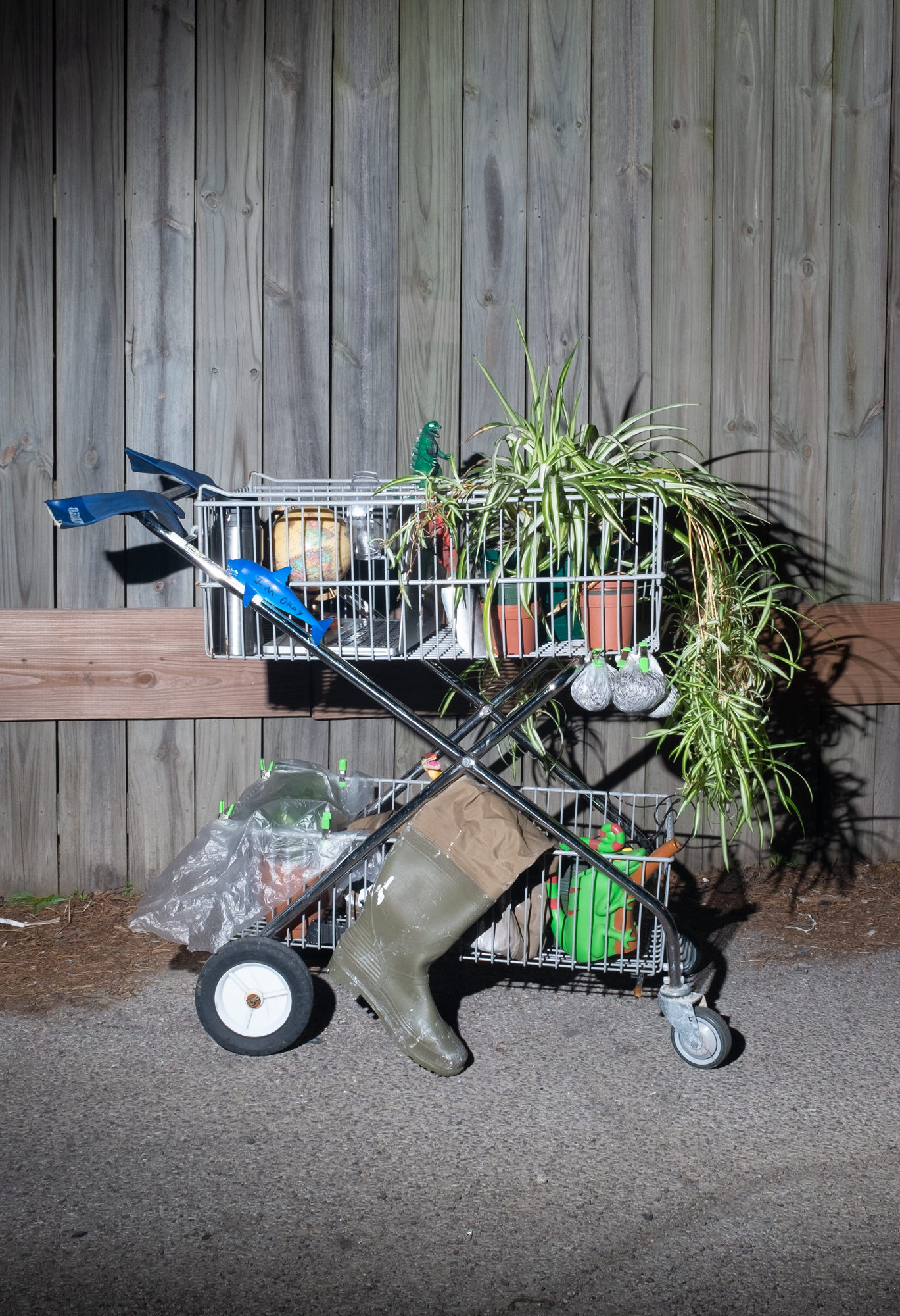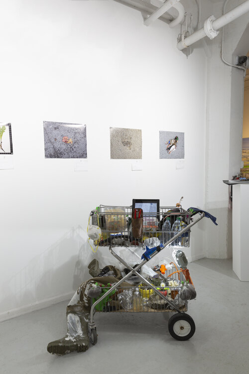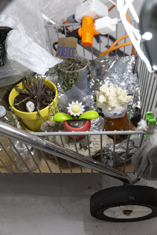 Detail of the lower shelf of the Expedition Cart, installed at 062 Gallery, Chicago IL, 2019.