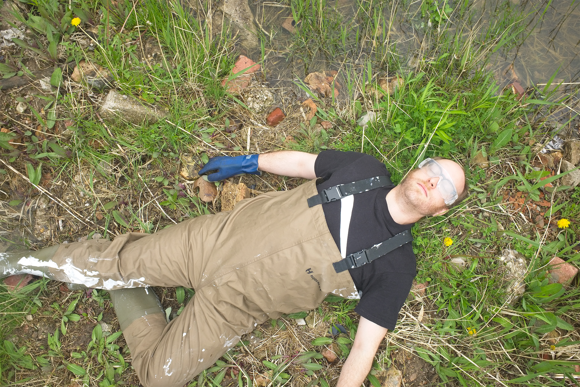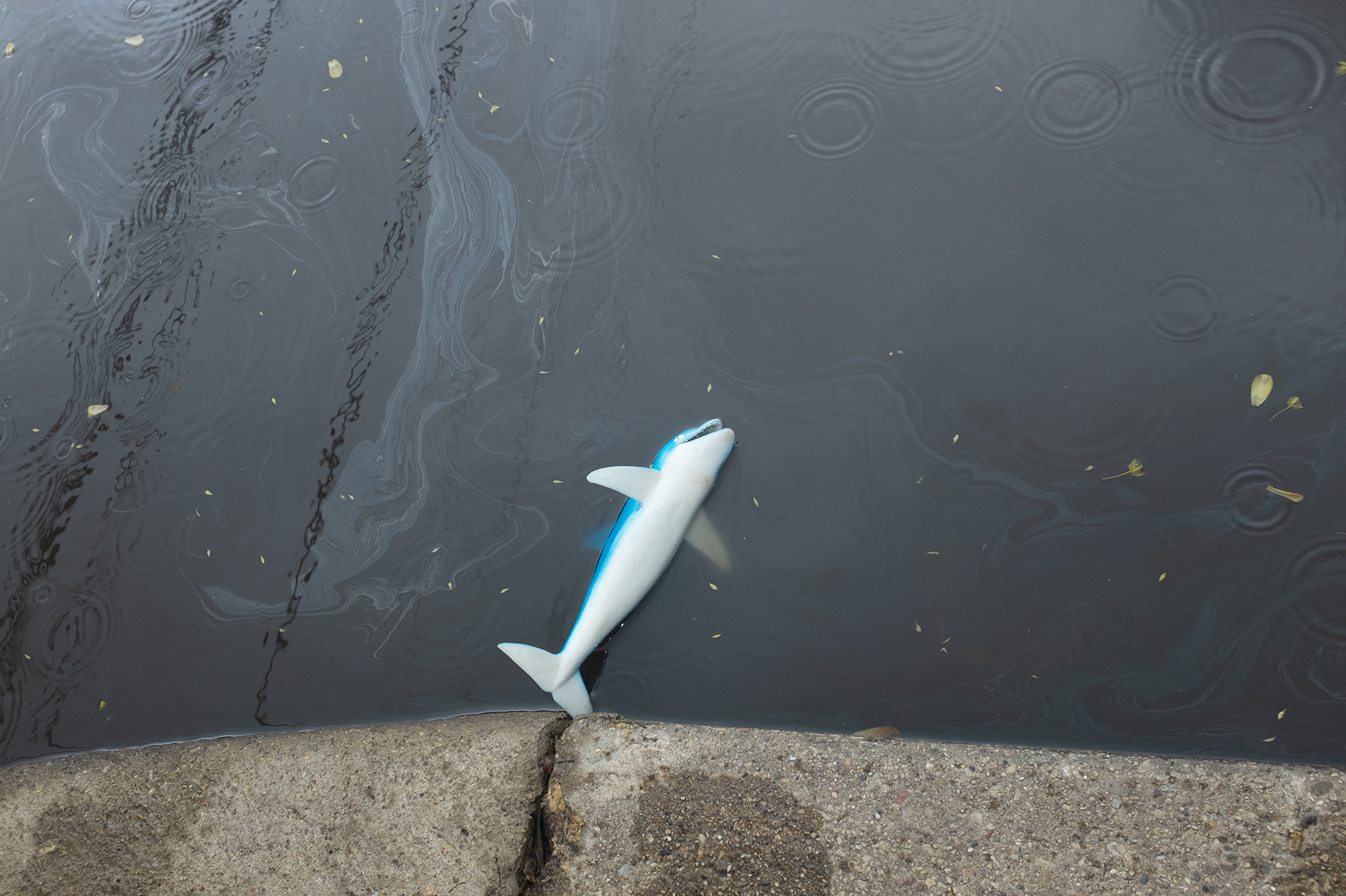 Plastic dolphin in tainted groundwater sample, 2019.Explorations of No Space, 2019. 10 Minutes. Short film examining the ground where I walked and pushed my Expedition cart. Including locations in Chicago IL, Rural Indiana, Lake Michigan, and IL nature preserves.