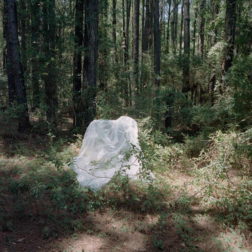The Pristine Nature series was created as a response to the environmental crisis. I had become shockingly aware that I couldn’t find the pristine nature of museum dioramas anymore. Every ecosystem I have access to has been altered by humans and invaded by non-native species, utterly changed from whatever their “natural” state might have been.. In these photographs I used plastic film to insert a hyperobject form into my photographs of natural landscapes and to highlight its ubiquitous presence. The constant plastic haunting shows us that at least to this artist pristine nature no longer exists, and we must view landscapes through the lens of hyperobject contamination.