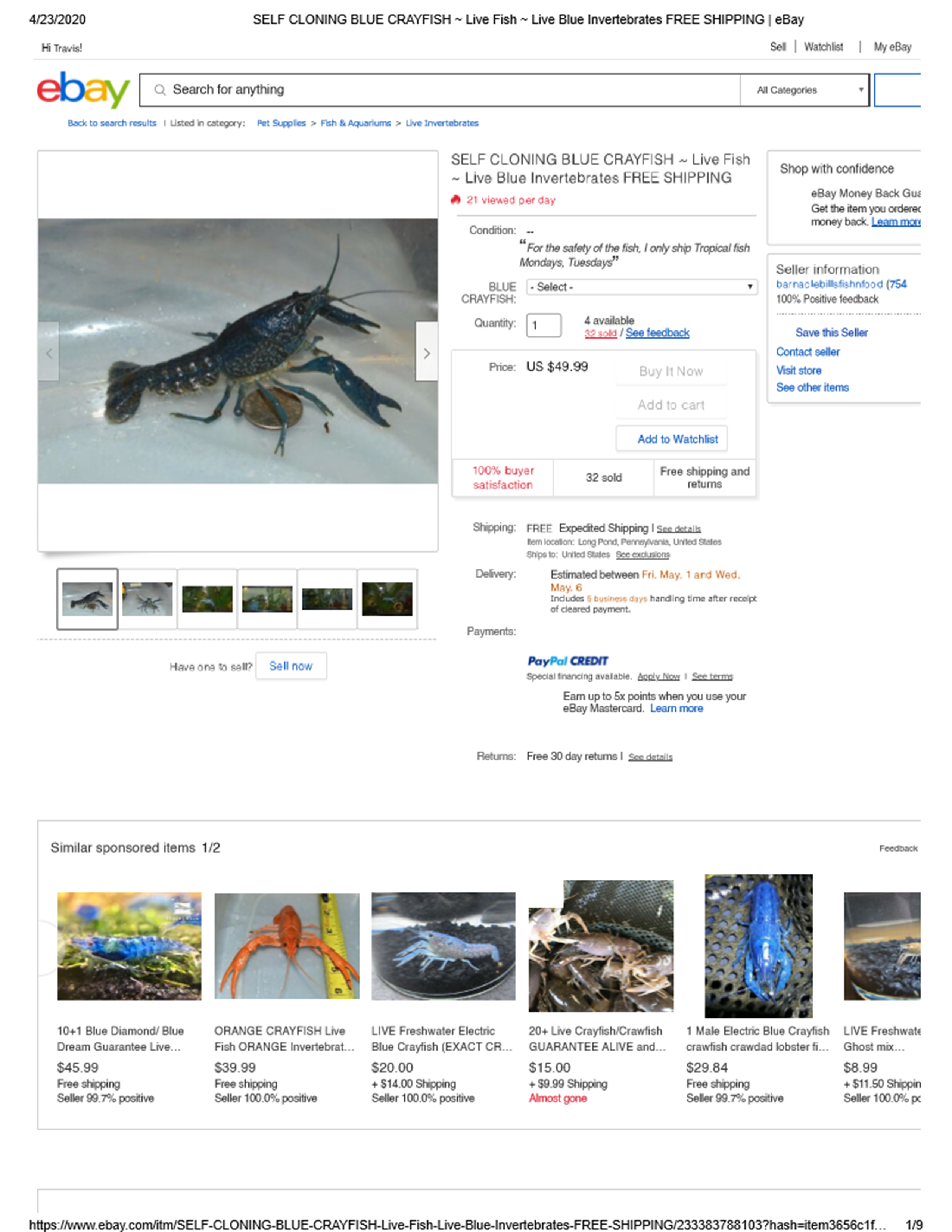 eBay listing for Self Cloning Crayfish April, 2020 (9)
